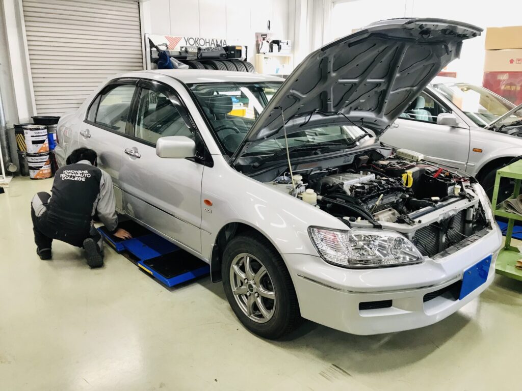 1級自動車整備科では、最新のハイブリッド車や高度なコンピューター診断はもちろん、今回のような「法定点検」もしっかりと体に叩き込みます。