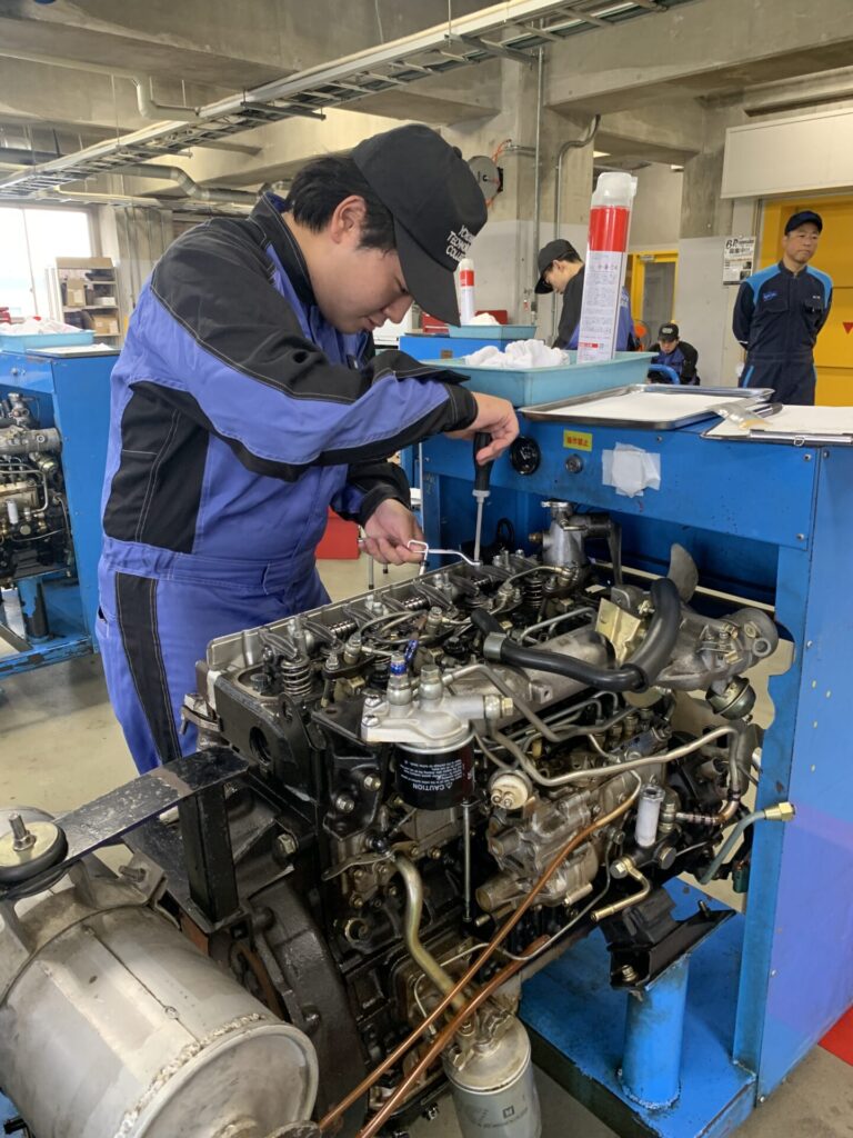 10月21日(火)、横浜テクノオート専門学校の自動車整備科/1級自動車整備科1年生では実技試験が行われていました。