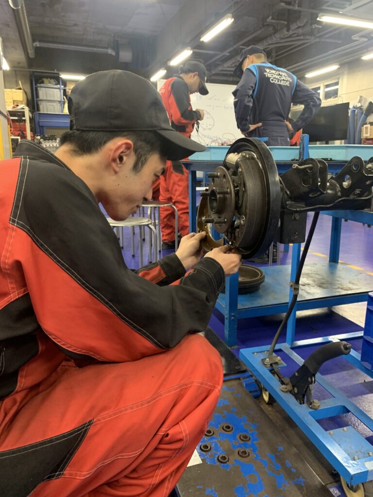 その隣ではドラムブレーキの分解/組付けの練習をしていました。